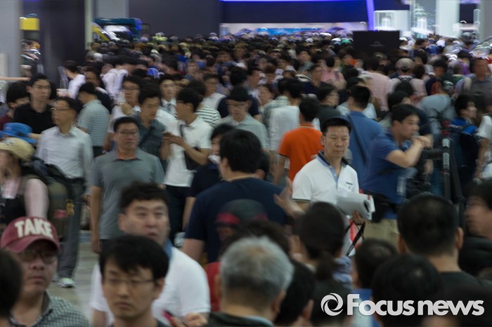 (부산=포커스뉴스) 3일 오후 부산 해운대구에 위치한 벡스코에서 열린 '2016 부산국제모터쇼'에서 관람객들이 분주히 움직이고 있다.