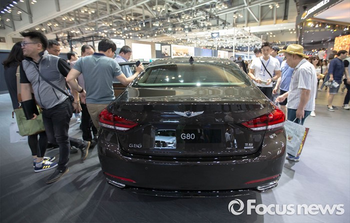 (부산=포커스뉴스) 3일 오후 부산 해운대구에 위치한 벡스코에서 열린 '2016 부산국제모터쇼'에 제네시스 'G80' 차량이 전시되어 있다.