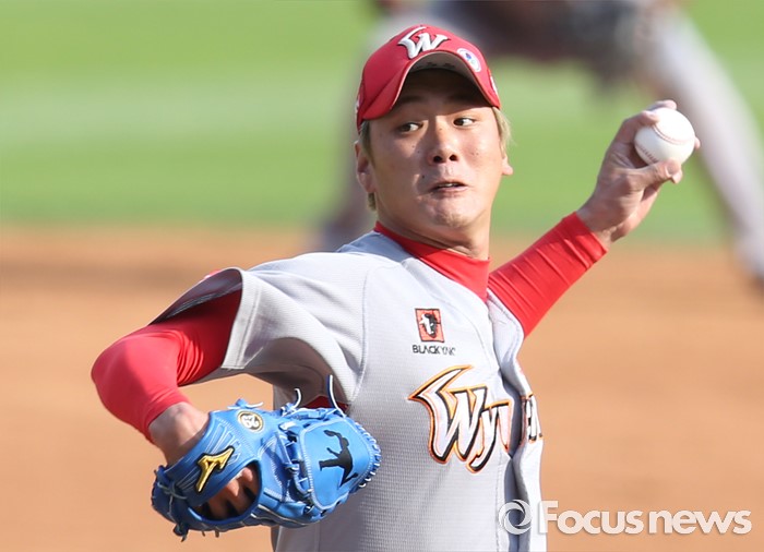 (서울=포커스뉴스) 5일 서울 잠실구장에서 열린 2016프로야구 SK-두산 경기에서 1회말 SK 선발투수 김광현이 투구하고 있다.