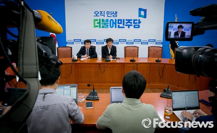 (서울=포커스뉴스) 6일 오전 서울 여의도 국회에서 박완주 더불어민주당 원내수석부대표가 20대 국회 원구성 협상을 위한 3당 원내수석부대표 비공개 회동을 앞두고 기자간담회를 하고 있다. 왼쪽은 기동민 원내대변인.