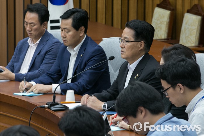 (서울=포커스뉴스) 6일 오전 서울 여의도 국회에서 박지원(왼쪽 세번째) 국민의당 원내대표가 20대 국회 원구성 협상 등과 관련 기자간담회를 하고 있다.