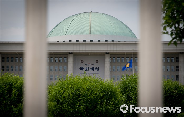 (서울=포커스뉴스) 20대 국회 원구성 법정 시한을 하루 앞두고 여야 공방이 이어지고 있는 6일 오후 서울 여의도 국회 정문 사이로 본청 모습이 보이고 있다.