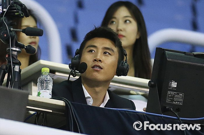 (부천=포커스뉴스) 6일 오후 경기 부천종합운동장에서 열린 2016 4개국 올림픽국가대표 축구대회 대한민국과 덴마크의 경기에서 구자철 선수가 해설을 위해 중계석에 앉아 있다.
