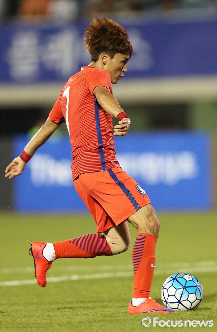 (부천=포커스뉴스) 6일 오후 경기 부천종합운동장에서 열린 2016 4개국 올림픽국가대표 축구대회 대한민국과 덴마크의 경기에서 대한민국 문창진이 선제골을 성공시키고 있다.