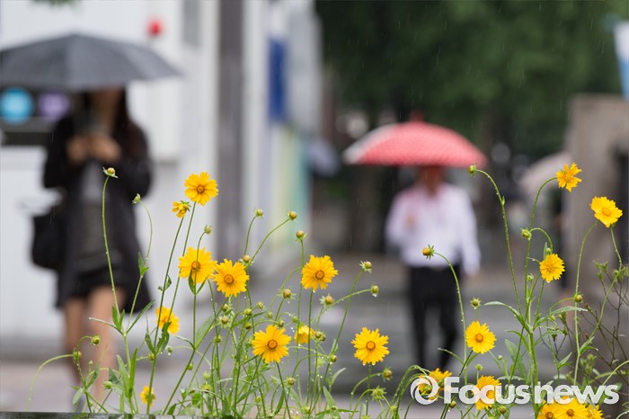 | △ 우산쓰고 거리를 지나는 시민들 |