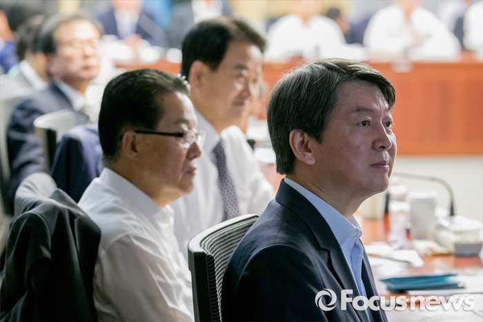 (서울=포커스뉴스) 7일 오전 서울 여의도 국회 의원회관에서 열린 국민의당 11차 정책역량강화 집중워크숍에 참석한 안철수(오른쪽부터) 상임공동대표, 박지원 원내대표, 정동영 의원 등 의원들이 오세정 의원의 강연을 듣고 있다.