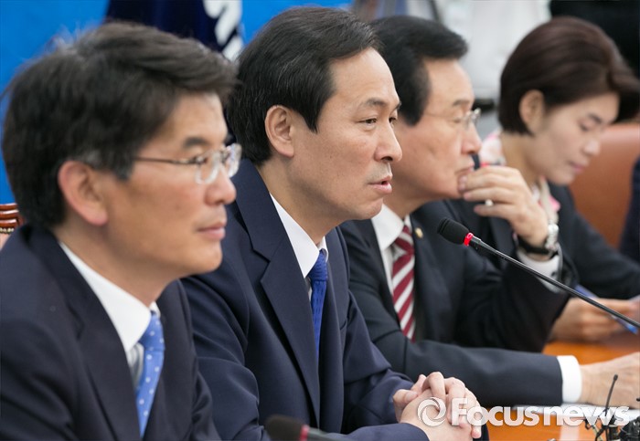 (서울=포커스뉴스) 7일 오전 서울 여의도 국회에서 열린 더불어민주당 원내대책회의에 참석한 우상호 원내대표가 모두발언을 하고 있다.