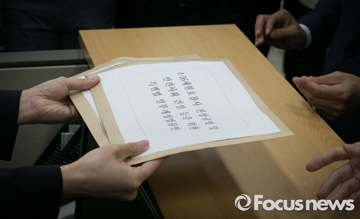 (서울=포커스뉴스) 박주민 더불어민주당 의원과 윤소하 정의당 의원, 전명선 4·16가족협의회 운영위원장, 유경근 집행위원장 등이 7일 오후 서울 여의도 국회 의안과에서 세월호 특별법 개정안 등을 제출하고 있다.