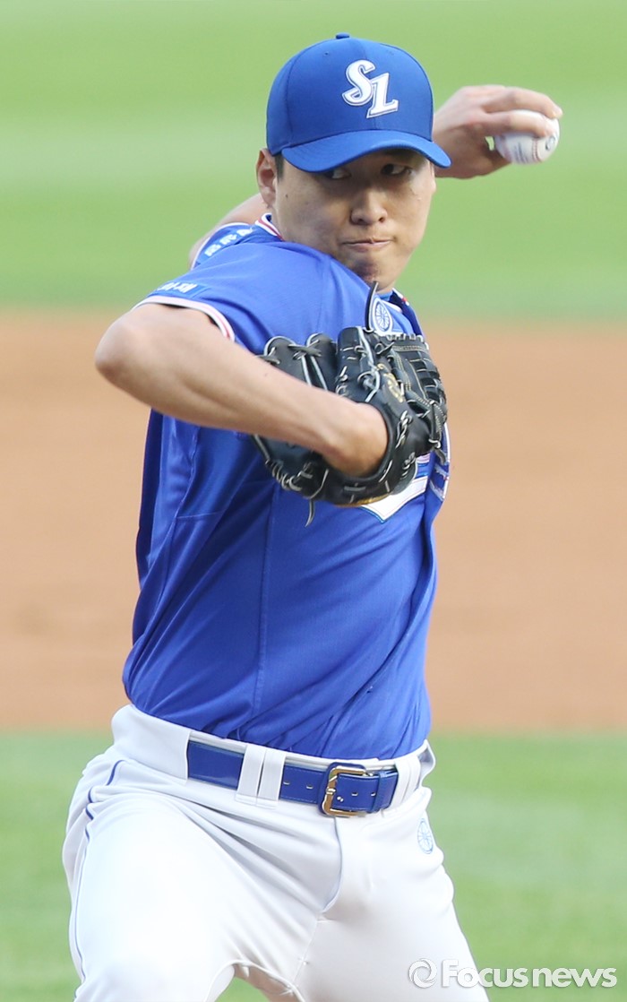 (서울=포커스뉴스) 7일 서울 잠실구장에서 열린 2016 프로야구 삼성-LG 경기에서 1회말 삼성 선발투수 차우찬이 투구하고 있다.