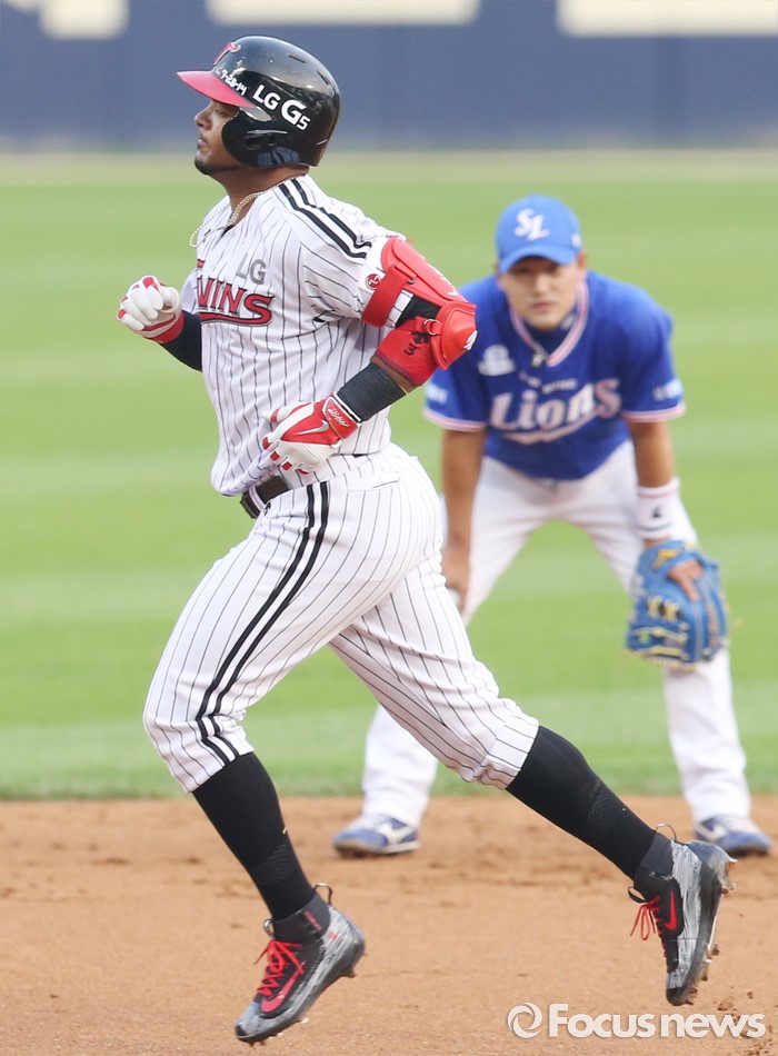 (서울=포커스뉴스) 7일 서울 잠실구장에서 열린 2016 프로야구 삼성-LG 경기 1회말 2사 1루에서 LG 히메네스가 좌월 2점 홈런을 치고 그라운드를 돌고 있다.