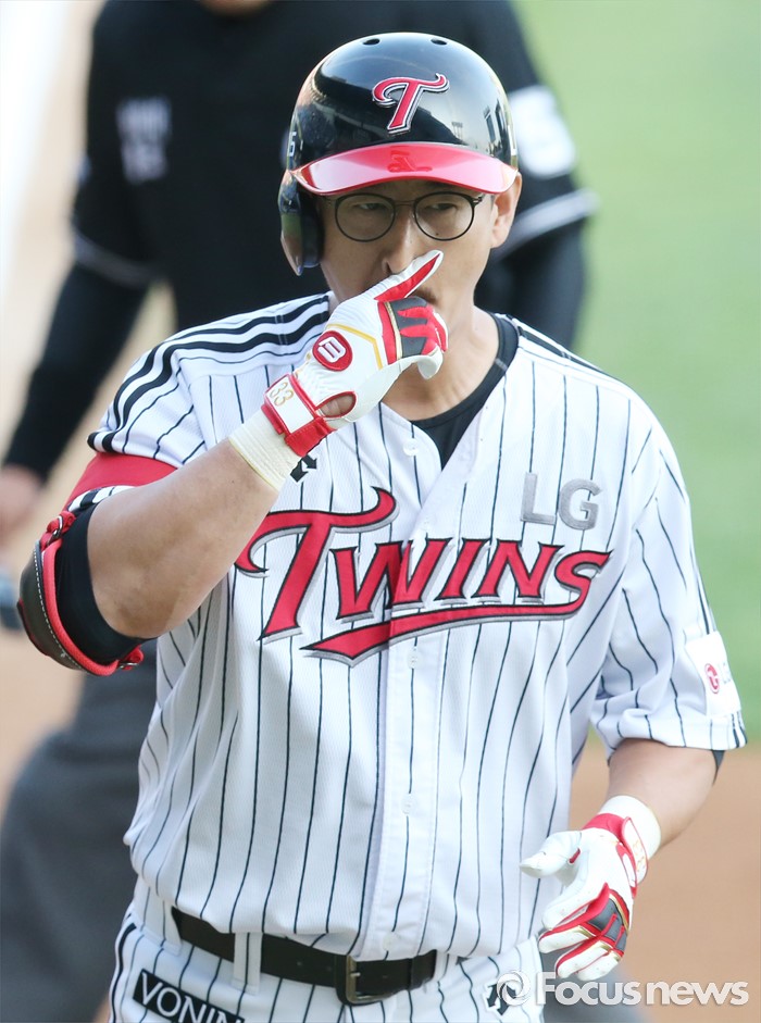 (서울=포커스뉴스) 8일 서울 잠실구장에서 열린 2016 프로야구 삼성-LG 경기 1회말 LG 톱타자 박용택이 우월 홈런을 치고 홈인하고 있다.