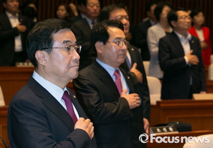 국민의례하는 김정훈-심재철