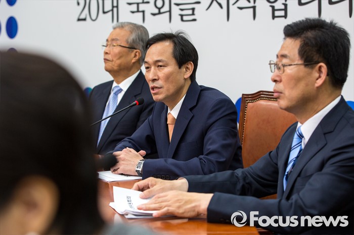 (서울=포커스뉴스) 우상호 더불어민주당 원내대표가 10일 오전 서울 여의도 국회에서 열린 비상대책위원회의에 참석해 모두발언 하고 있다.