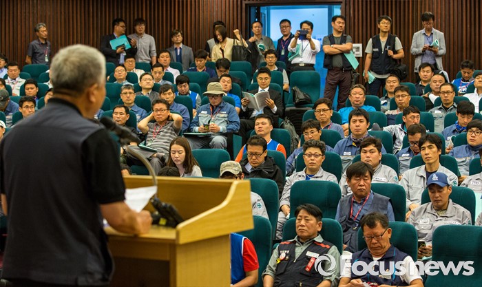 (서울=포커스뉴스) 김동만 한국노총 위원장이 9일 오전 서울 여의도 국회도서관 강당에서 열린 '위기의 조선산업 및 노동자 구조조정 해법 모색 대토론회'에 참석해 인사말을 하고 있다.