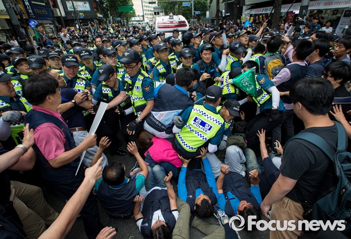 | △ 경찰과 충돌하는 노조원들 |