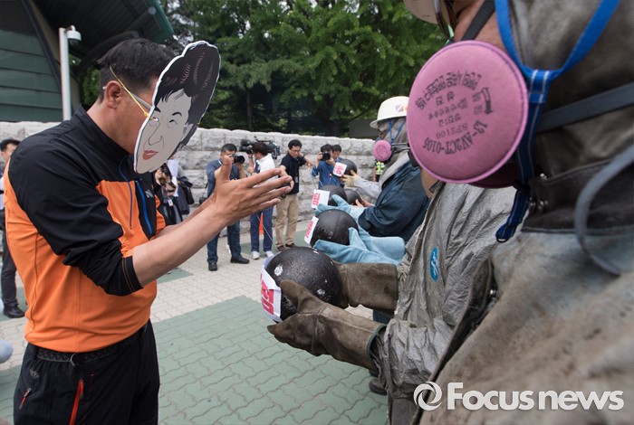 | △ 퍼포먼스 하는 조선소 하청업체 직원들 |