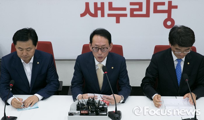 (서울=포커스뉴스) 여야 3당이 20대 국회 원구성에 합의한 8일 오후 서울 여의도 국회 새누리당 원내대표실에서 김도읍(가운데) 새누리당 원내수석부대표, 박완주(오른쪽) 더불어민주당 원내수석부대표, 김관영 국민의당 원내수석부대표가 3당 원내지도부 회동 결과를 발표하고 있다.