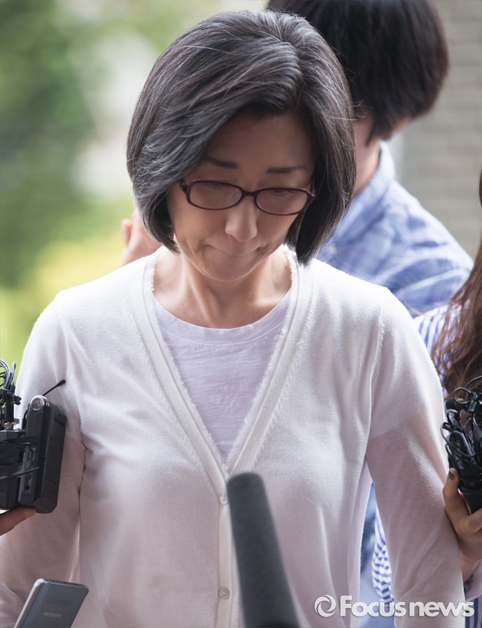 (서울=포커스뉴스) 미공개 정보를 이용해 주가하락 손실을 피한 혐의를 받고 있는 최은영 전 한진해운 회장이 피의자 신분으로 8일 오전 서울 양천구 서울남부지검에 들어서고 있다.