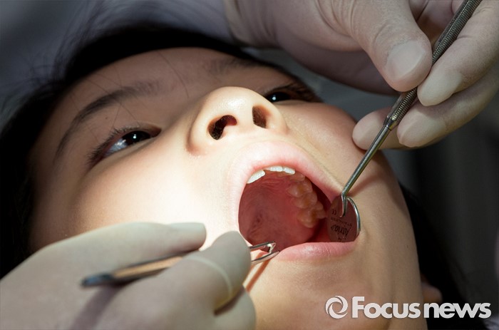 (서울=포커스뉴스) 9일 오전 서울 청계광장에서 열린 제1회 서울시민 구강보건의 날 기념행사에 참석한 어린이들이 이동 치아검진을 받고 있다.