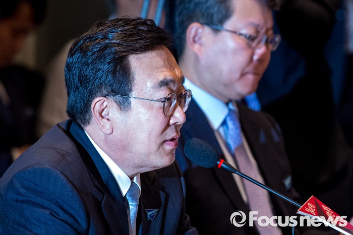 (서울=포커스뉴스) 서병수 부산광역시장이 8일 오전 서울 여의도 켄싱턴호텔에서 열린 '새누리당 부산시당-부산광역시 당정 협의'에 참석해 모두발언 하고 있다. 이날 부산지역 새누리당 의원 및 부산광역시 관계자들은 당정협의를 통해 가덕신공항 유치와 조선-해양산업 위기 극복에 대한 대책 의견을 교환 했다.
