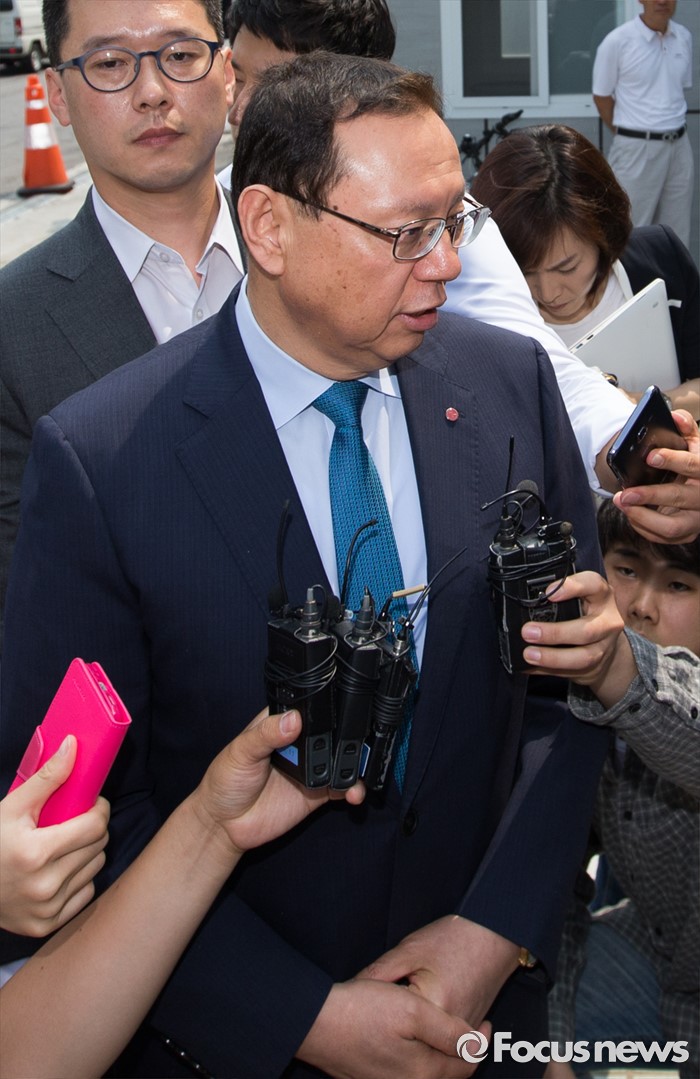 (서울=포커스뉴스) 조성진 LG전자 대표이사 사장이 10일 오전 '삼성전자 세탁기 파손' 재물손괴 등의 혐의로 항소심 선고 공판을 마치고 서울 서초구 서울고등법원을 나서며 취재진 질문에 답변하고 있다. 조 사장은 1심에 이어 2심에서도 무죄를 선고 받았다.