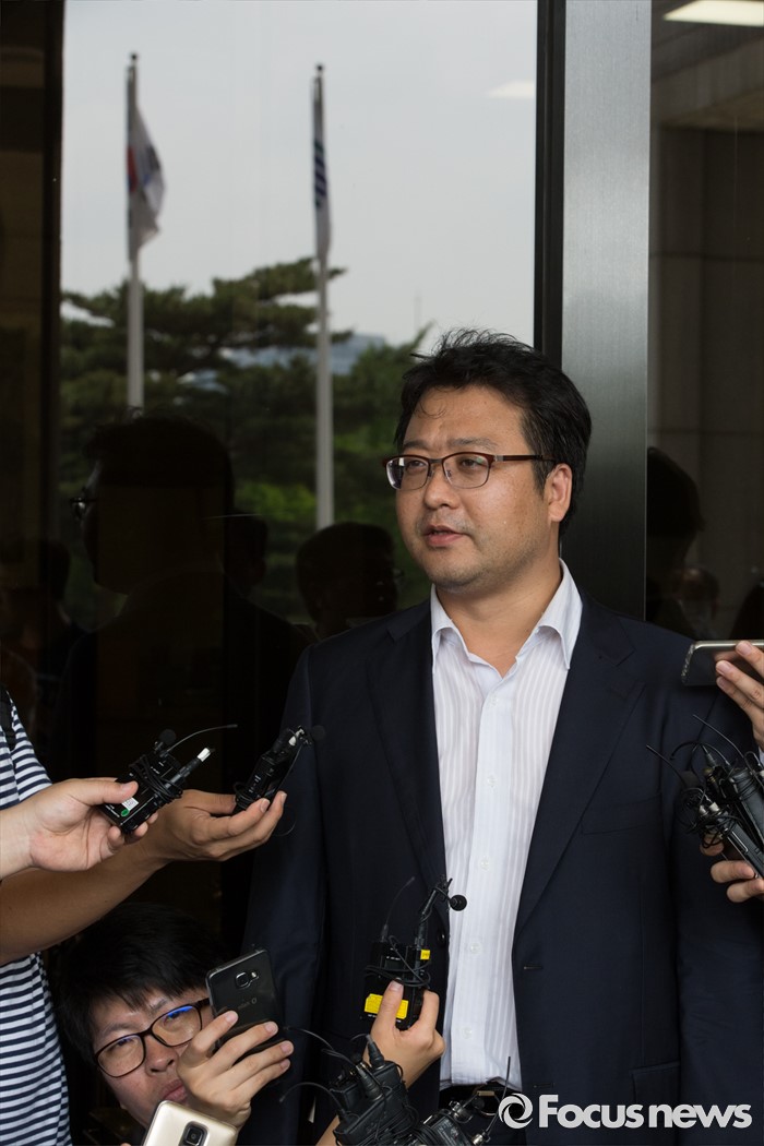 (서울=포커스뉴스) 세월호 특조위 윤천우 조사2과장이 8일 오전 서울 서초구 서울중앙지방검찰청에서 산케이신문 전 서울지국장 사건 관련 자료 확보를 위해 실지조사에 나섰다 검찰 측의 거부로 무산되자 지검을 나와 취재진의 질문에 답하고 있다.