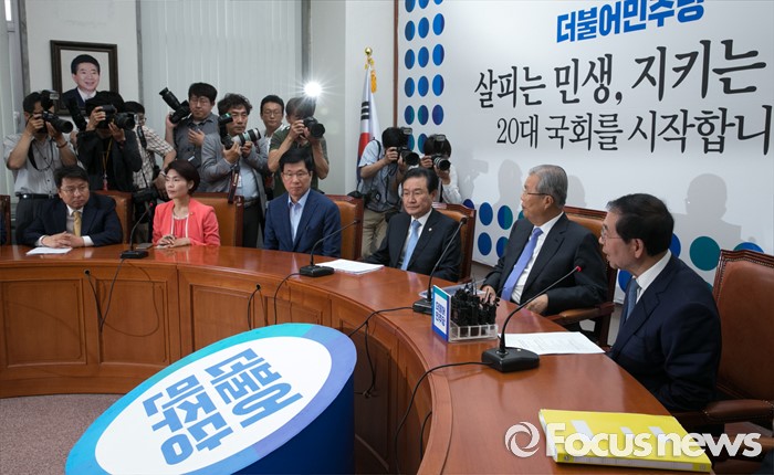 (서울=포커스뉴스) 8일 오전 서울 여의도 국회에서 구의역 스크린도어 노동자 사망 사건과 관련해 열린 더불어민주당-서울시 정책간담회에 참석한 박원순(오른쪽 첫번째) 서울시장이 발언하고 있다.