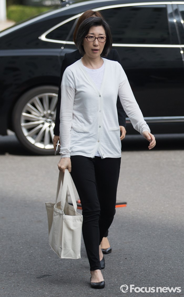 (서울=포커스뉴스) 미공개 정보를 이용해 주가하락 손실을 피한 혐의를 받고 있는 최은영 전 한진해운 회장이 피의자 신분으로 8일 오전 서울 양천구 서울남부지검에 들어서고 있다.