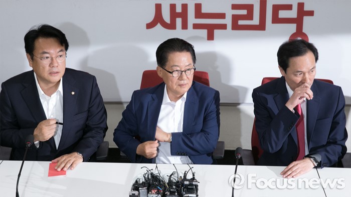 (서울=포커스뉴스) 8일 오후 서울 여의도 국회 새누리당 원내대표실에서 20대 국회 원구성 협상 등을 위한 3당 원내지도부 회동에 참석한 의원들이 논의하고 있다. 이날 여야 3당은 20대 국회 원구성에 합의했다. 왼쪽부터 정진석 새누리당 원내대표, 박지원 국민의당 원내대표, 우상호 더불어민주당 원내대표.