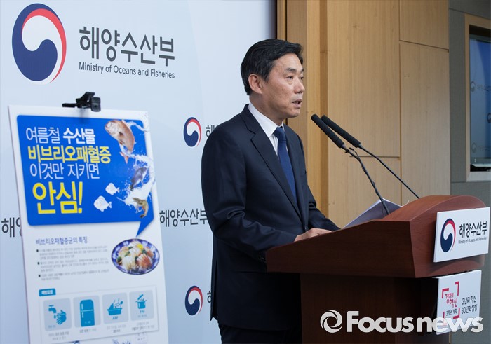 (세종=포커스뉴스) 오운열 해양수산부 어촌양식정책관이 8일 오전 세종시 정부세종청사 해수부 기자실에서 여름철 수산물 위생·안전관리 대책 관련 브리핑을 하고 있다. 해수부는 최근 폭염특보가 발령되는 등 평년보다 이른 더위에 수산물이 장염비브리오 등 세균에 오염될 가능성이 높아져 수산물 위생·안전관리 대책을 집중적으로 추진할 계획이라고 밝혔다.