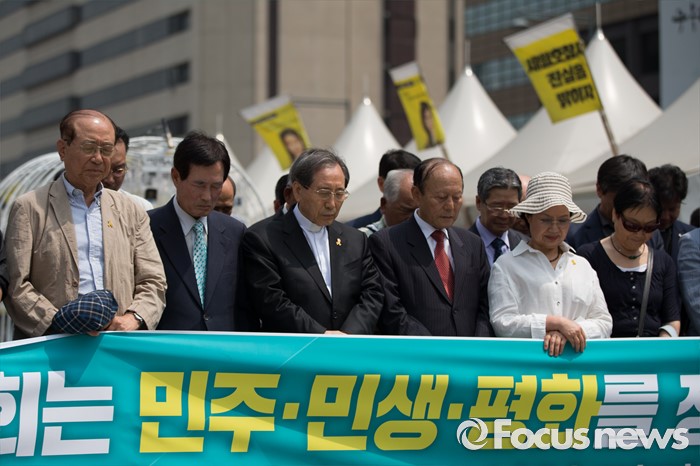 (서울=포커스뉴스) 6월 민주항쟁 29주년인 10일 노동·농민·청년·종교계 등 각계각층 시민단체들이 한자리에 모여 기자회견을 열고 20대 국회를 향해 "6월 항쟁의 정신을 계승해 민주·민생·평화 회복을 위해 노력해달라"는 목소리를 냈다.