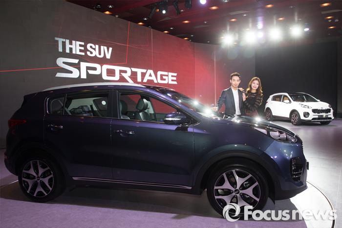 한편 현대·기아차는 중국 시장을 주도하고 있는 SUV 판매에 집중하면서 할부 상품 강화, 주력 상품의 상품성 개선 모델 출시, 500여개에 달하는 지역 모터쇼 집중 지원 등 적극적인 현지 마케팅 활동을 펼쳐왔다.(서울=포커스뉴스) 15일 오전 서울 광진구 워커힐로 W호텔에서 열린 기아자동차 The SUV, 스포티지 출시 행사에 홍보 모델들이 신차 앞에서 포즈를 취하고 있다. 2015.09.15 김유근 기자