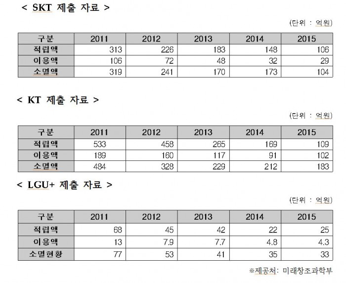 8일 녹색소비자연대 전국협의회(상임위원장 이덕승 이하 녹소연) ICT소비자정책연구원이 미래창조과학부와 이동통신3사로부터 제공받은 '최근 5년간 이동통신 3사의 마일리지 현황'자료를 분석한 결과, 이통 3사의 지난 5년간 소멸 마일리지는 2682억원에 달했으며, 소멸율은 73%에 달했다. 통신사별로 보면 KT가 1436억원, SK텔레콤이 1007억원, LG유플러스가 239억원이었다.