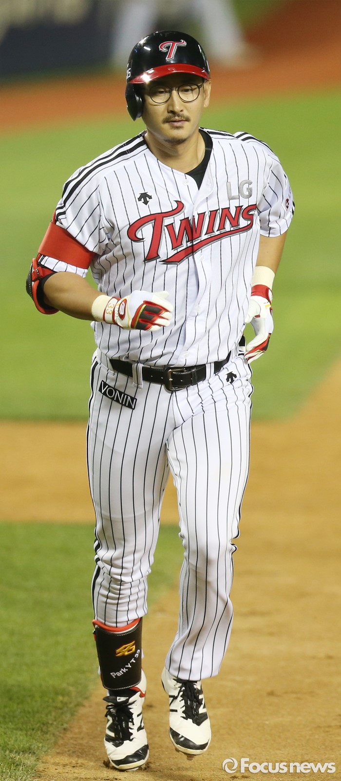 (서울=포커스뉴스) 8일 서울 잠실구장에서 열린 2016 프로야구 삼성-LG 경기 7회말 LG 박용택이 선두타자로 나와 우월 솔로 홈런을 치고 3루를 돌아 홈인하고 있다.