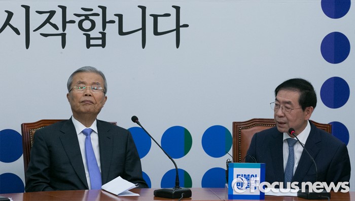 (서울=포커스뉴스) 8일 오전 서울 여의도 국회에서 구의역 스크린도어 노동자 사망 사건과 관련해 열린 더불어민주당-서울시 정책간담회에 참석한 김종인(왼쪽) 비대위 대표가 박원순 서울시장의 발언을 듣고 있다.