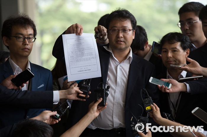 (서울=포커스뉴스) 세월호 특조위 윤천우 조사2과장이 8일 오전 서울 서초구 서울중앙지방검찰청에서 산케이신문 전 서울지국장 사건 관련 자료 확보를 위해 실지조사에 나서 실지조사통지서를 들어보이고 있다.