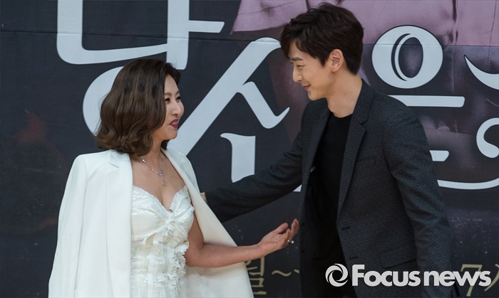 (서울=포커스뉴스) 8일 오후 서울 양천구 SBS 목동사옥에서 열린 SBS 일일드라마 '당신은 선물' 제작발표회에 참석한 배우 최명길(왼쪽)과 심지호가 포토타임을 갖고 있다.