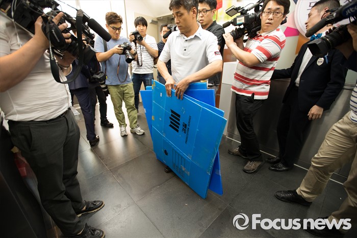 (서울=포커스뉴스) 검찰이 롯데그룹 비자금조성 의혹과 관련해 롯데호텔과 신동빈 회장 자택 등을 압수수색한 10일 오후 서울 중구 롯데그룹 본사로 검찰 수사관이 박스를 들고 가고 있다.