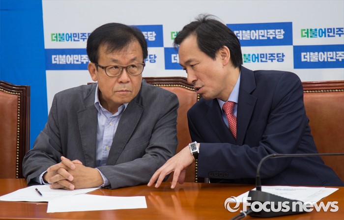 더민주는 오는 9일 오전 11시 의원총회를 개최, 국회의장 경선을 치를 예정이다. 원 의원의 경선 포기로 더민주에서는 6선의 문희상·이석현·정세균 의원과 5선의 박병석 의원 등 4인이 경쟁을 벌일 것으로 보인다.우상호(오른쪽) 더불어민주당 원내대표가 1일 오전 서울 여의도 국회 원내대표실에서 열린 서민주거TF 발족식에서 원혜영 의원과 대화하고 있다. 2016.06.01 김흥구 기자