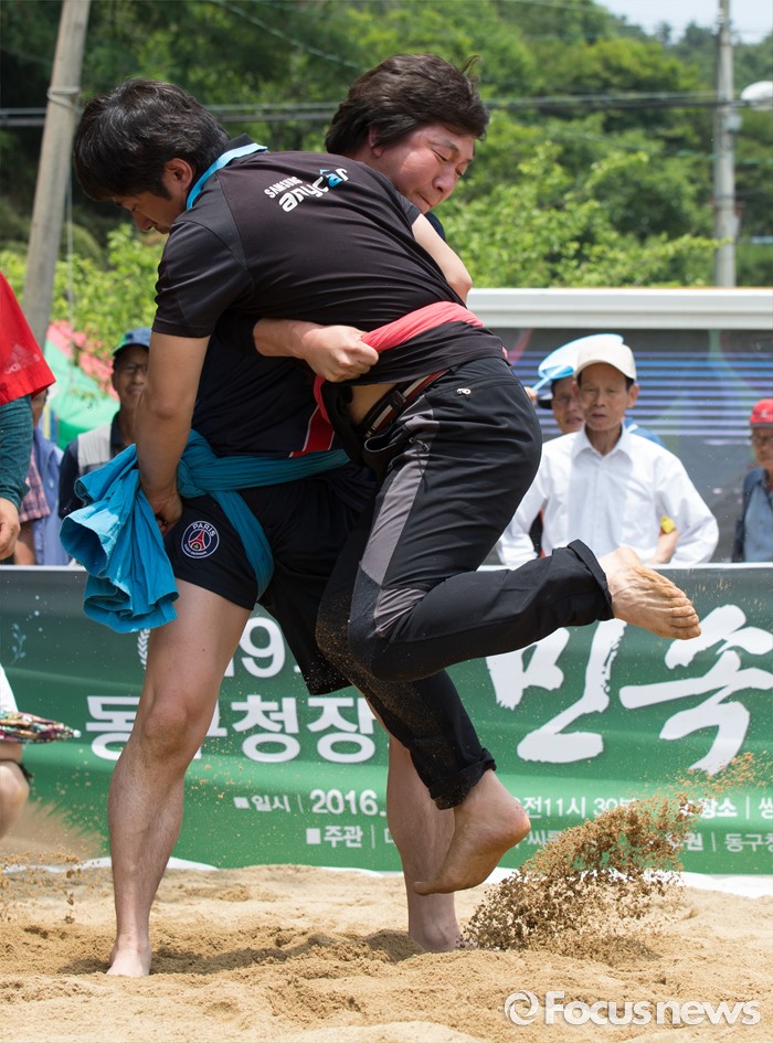 (대전=포커스뉴스) 9일 오후 (음력5월5일) 단오를 맞아 대전 동구 쌍청당공원에서 열린 판암골 단오한마당에서 주민들이 씨름을 하고 있다.