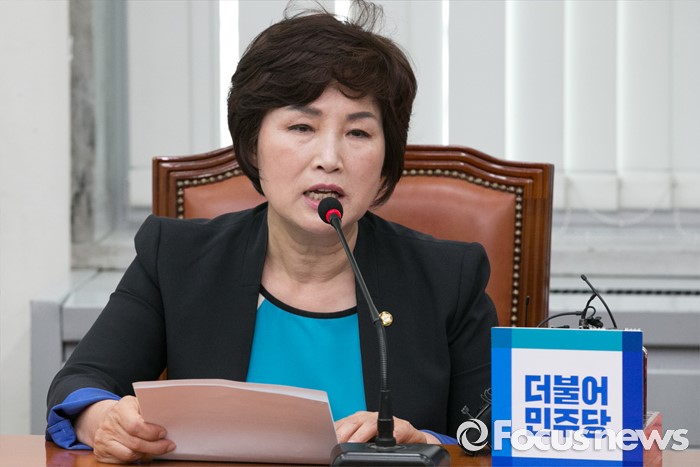 (서울=포커스뉴스) 8일 오전 서울 여의도 국회에서 열린 더불어민주당 비상대책위원회의에 참석한 전혜숙 의원이 발언하고 있다.