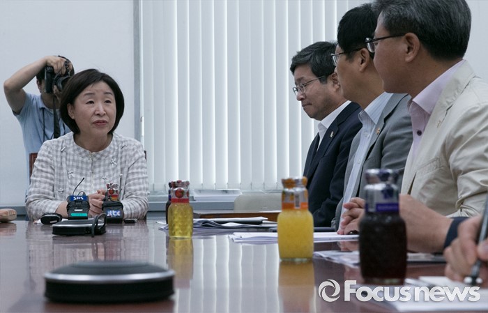 (서울=포커스뉴스) 심상정 정의당 상임대표가 10일 오후 서울 여의도 국회에서 지방재정법 시행령과 관련 경기도 기초단체장들과 만나 간담회를 하고 있다. 이날 간담회에는 염태영 수원시장, 채인석 화성시장, 최성 고양시장 등이 참석했다.