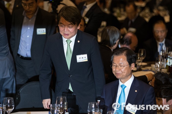 (서울=포커스뉴스) 9일 오후 서울 여의도구 63빌딩 그랜드볼룸에서 열린 '6.15 남북정상회담 16주년 기념식'에 안철수(가운데), 천정배 국민의당 공동대표가 참석하고 있다.