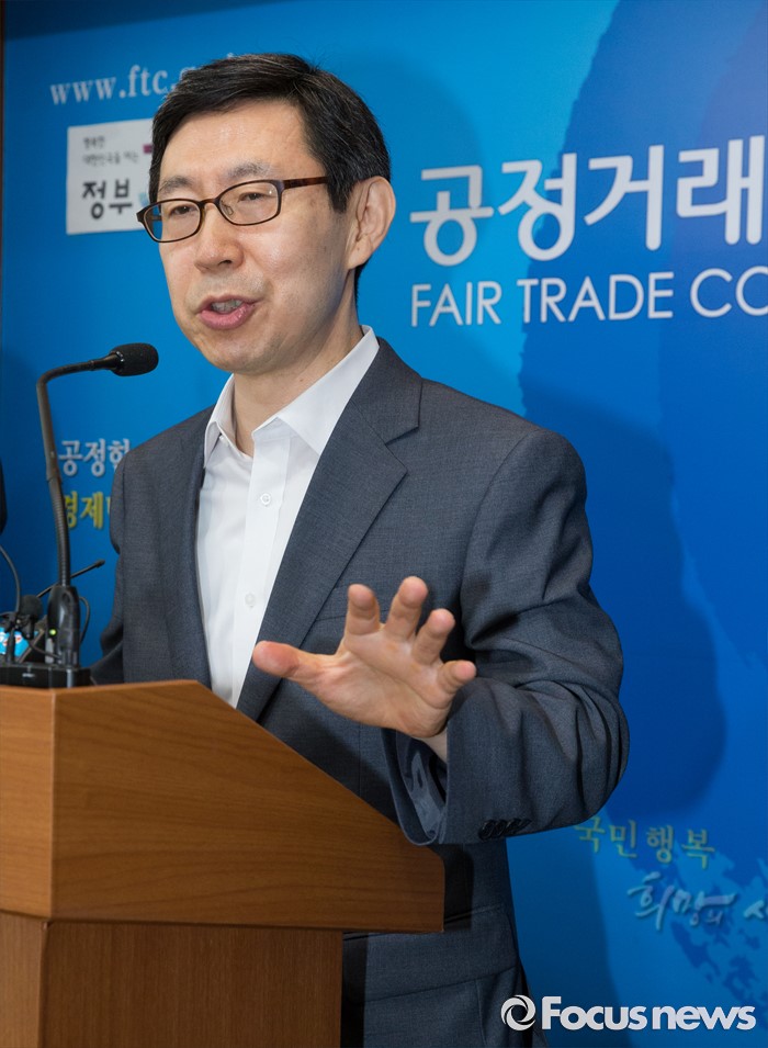 (세종=포커스뉴스) 신영선 공정거래위원회 사무처장이 8일 오전 세종시 정부세종청사 공정위 기자실에서 대기업집단 지정제도 개선방안에 대한 브리핑을 하고 있다. 왼쪽부터 박춘호 기획재정부 법인세제과장, 이병원 기획재정부 기업환경과장,
