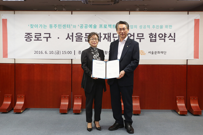 서울문화재단과 종로구는 동주민센터를 비롯한 주민생활 공간을 대상으로 한 공공예술 프로젝트 추진, 지역사회를 위한 문화 콘텐츠 개발을 위해 적극 협력키로 했다.