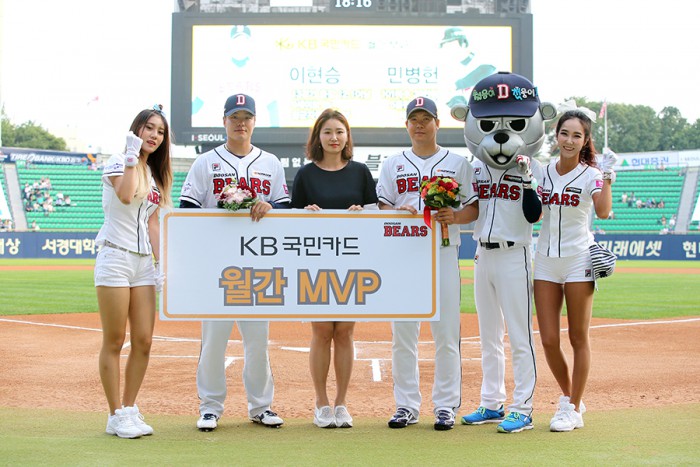 투수 이현승은 5월 한달 간 13경기 9세이브 평균자책점 3.65로 뒷문을 든든히 지켜줬다. 9일 현재 16세이브를 기록하며 부문 1위에 올라 있다. 외야수 민병헌은 25경기 타율 3할8푼6리(101타수 39안타) 5홈런 21타점을 타선 중심을 잡았다.