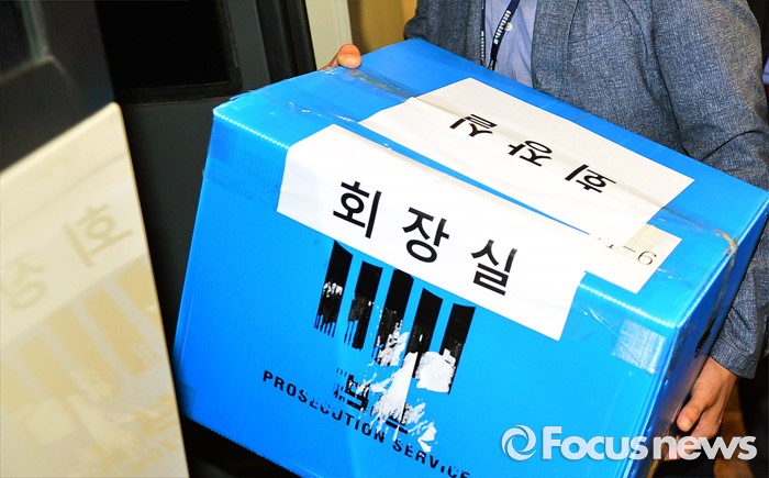 (서울=포커스뉴스) 10일 오후 서울 중구 소공동 롯데호텔에서 검찰 수사관들이 롯데그룹 정책본부 등 계열와 신동빈 롯데그룹 회장 집무실에서 압수수색한 서류를 화물차에 싣고 있다.