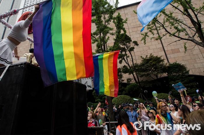(서울=포커스뉴스) 11일 오후 제17회 퀴어문화축제 참가자들이 서울광장을 출발해 을지로일대를 지나며 퀴어퍼레이드를 벌이고 있다.