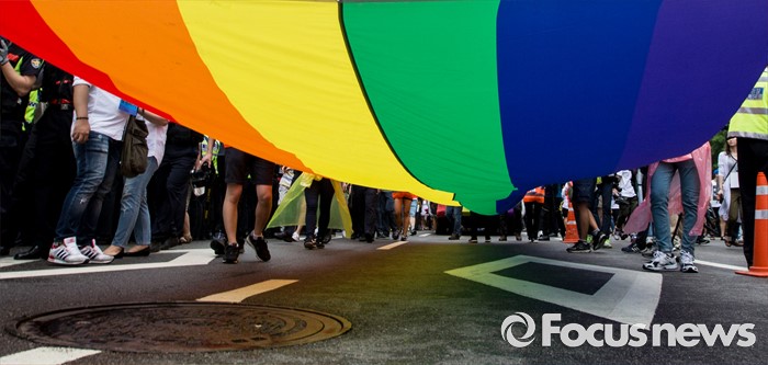 (서울=포커스뉴스) 11일 오후 제17회 퀴어문화축제 참가자들이 서울광장을 출발해 을지로일대를 지나며 퀴어퍼레이드를 벌이고 있다.
