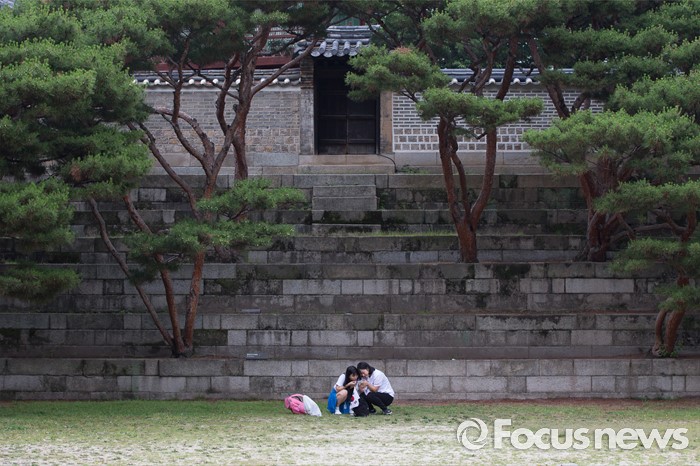 (서울=포커스뉴스) 12일 오전 서울 종로구 창덕궁에서 '제7회 나라사랑 고궁걷기 대회'에 참가한 시민들이 사진촬영을 하고 있다.